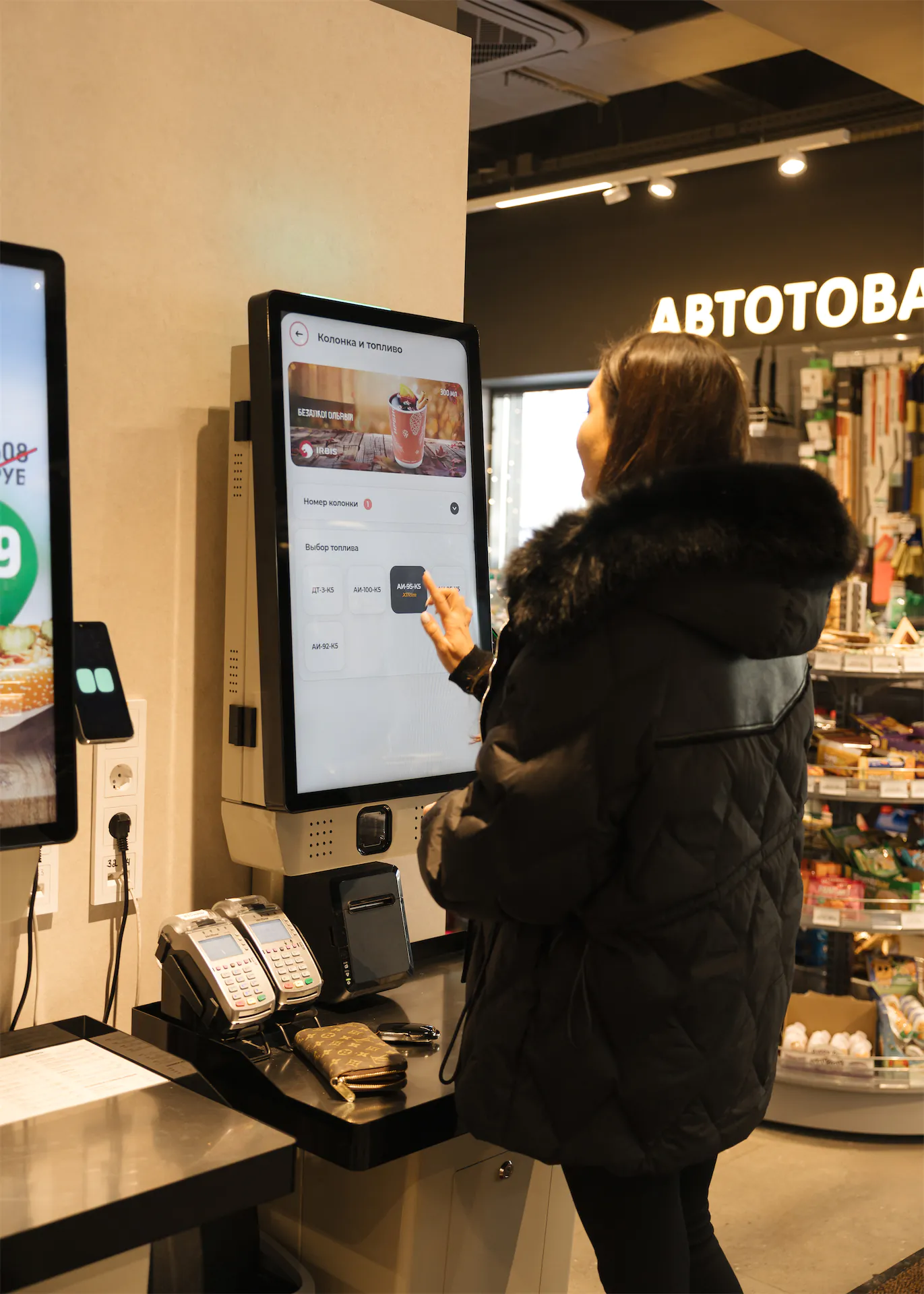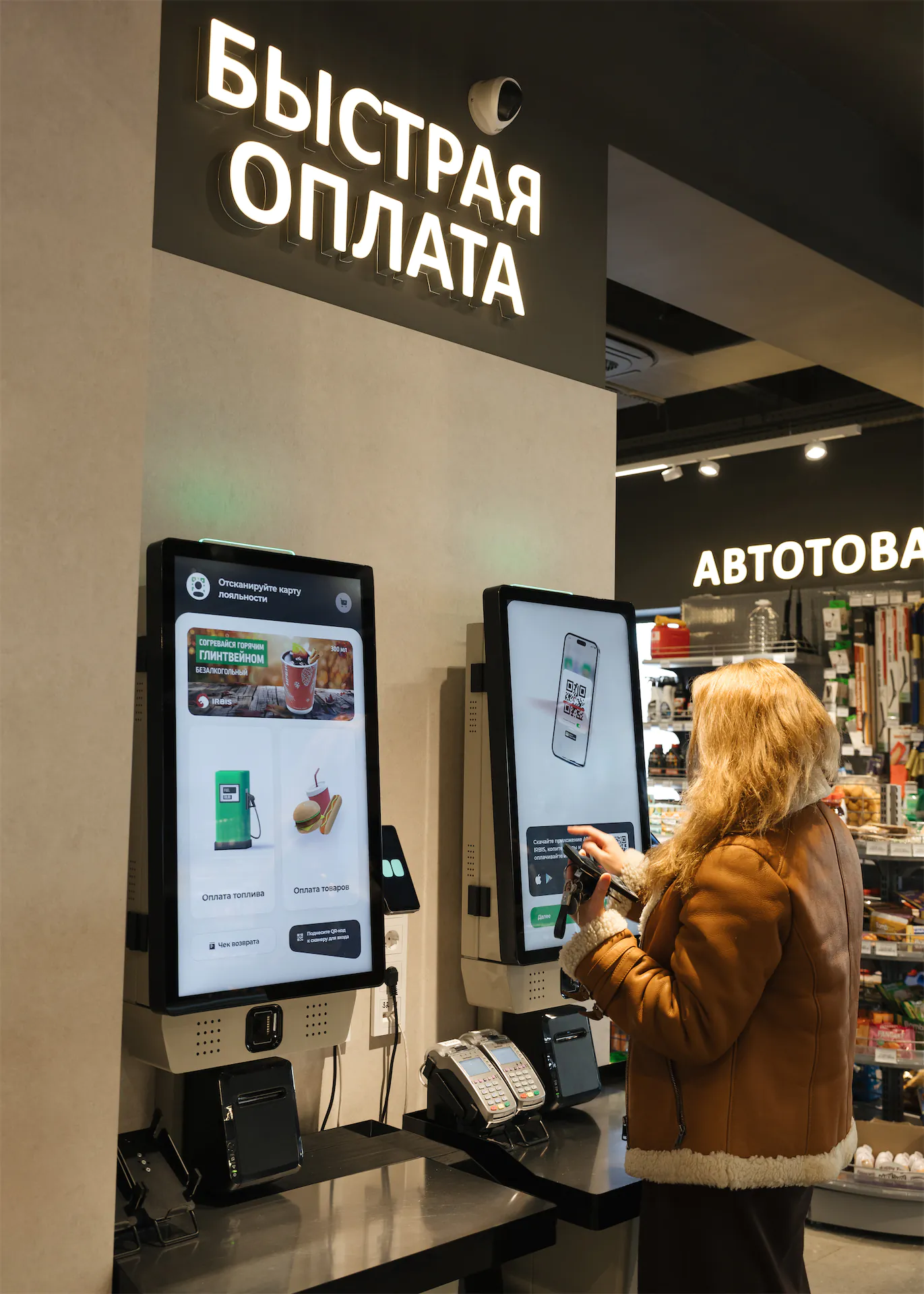 Новые кассы самообслуживания на АЗС «Ирбис» упростили и ускорили прием оплаты за топливо. Более 30 касс для АЗС уже установлено в рамках первого этапа автоматизации автозаправок в Москве, Поволжье и других регионах присутствия сети. Они размещены в помещениях автозаправок и позволяют не только оплачивать топливо, но покупать напитки, кофе, выпечку и другие товары из микромаркета.