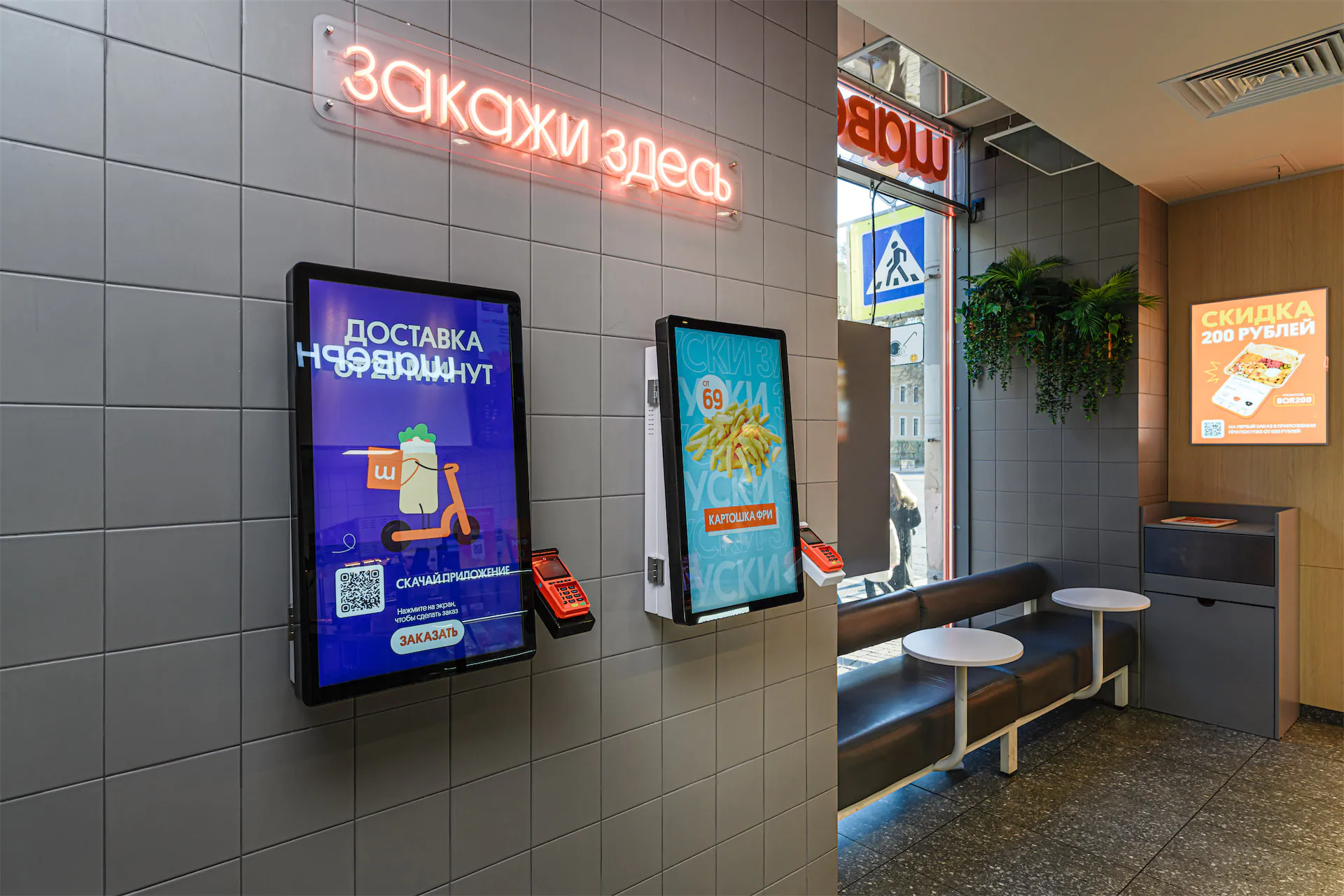 Сеть кафе «Шаверно» (Санкт-Петербург) обратилась в компанию Тачплат с задачей оптимизировать обслуживание гостей, а также снизить операционные затраты и нагрузку на кассиров в часы пик за счет установки касс самообслуживания. Для автоматизации кафе мы предложили наши терминалы Q-50 как наиболее подходящий вариант для помещений с небольшой площадью. Это компактные автономные кассы, которые мы разместили на стенах кафе и торговых прилавках, что позволило сэкономить пространство в точках продаж. Программное обеспечение для киосков, управляющее электронным меню и системой приема заказов, разработали наши партнеры. Они же автоматизировали передачу данных о продажах в систему учета, а также связь между системой приема заказов и кухней.